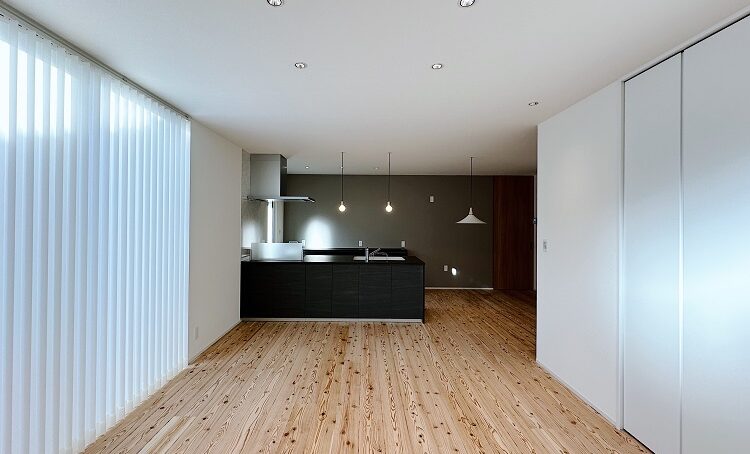 リビングの南面の窓は大きくし、バーチカルブラインドで日射を簡単に調整できるようにしました。小ぶりなダウンライトを各所に配置し、シーンに合わせて調整しやすいようにしました。