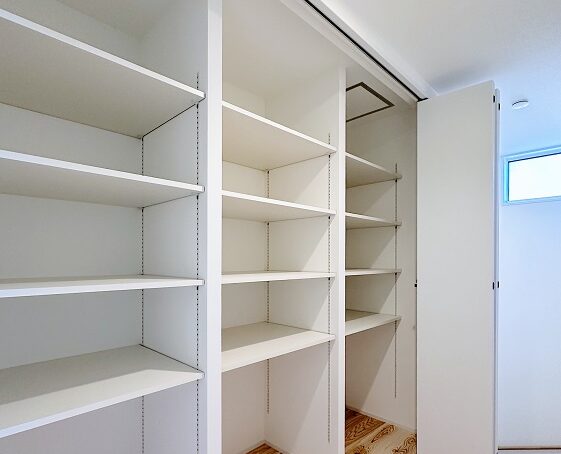 キッチンに隣接するパントリーには可動棚を設置し、食品やレシピ本や冷凍庫などを収納できるようにしました。