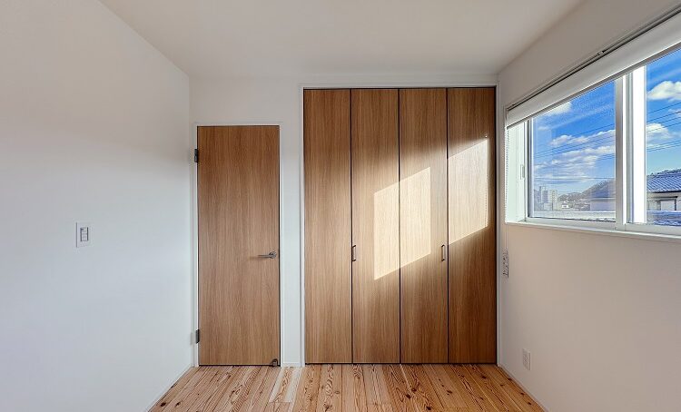 クローゼット付きの子供室は、2室設けました。西面に窓を設けないことで、西日が入らないよう配慮しました。