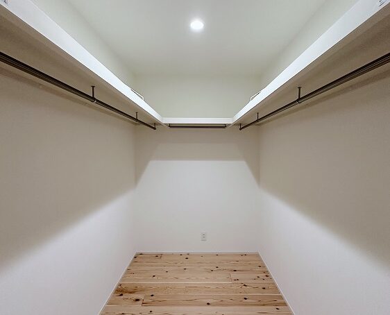 主寝室に隣接するウォークインクローゼットには、枕棚とハンガーパイプを設置しました。レイアウトの変更がしやすく使いやすいです。