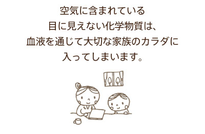 シックハウスなどのアレルギーから家族の健康を守るために、新建材などに抗菌処理が施された家に住む方がいます。このような家は私たちの人間の免疫力をも低下させてしまいます。